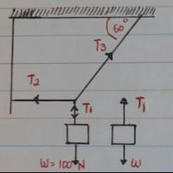 Salah satu tali membentuk sudut 60 o terhadap arah horizontal dan tali lainnya ditarik dengan gaya sebesar f. Pada sistem kesetimbangan benda seperti pada gambar di samping, panjang ab = 80 cm, ac = 60 cm, dan berat 18 n. Benda pada gambar dibawah memiliki berat 100 n digantung dalam keadaan diam. Suhu t1 dan t2 adalah sebesar. Tentukan besar gaya tegangan tali t 1 dan t 2!